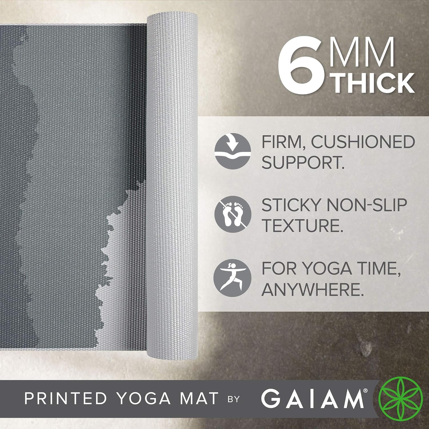 Gaiam Yoga Mat – Premium 6mm Print Extra Thick Non Slip Exercise & Fitness Mat for All Types of Yoga, Pilates & Floor Workouts (68″L x 24″W x 6mm Thick)
